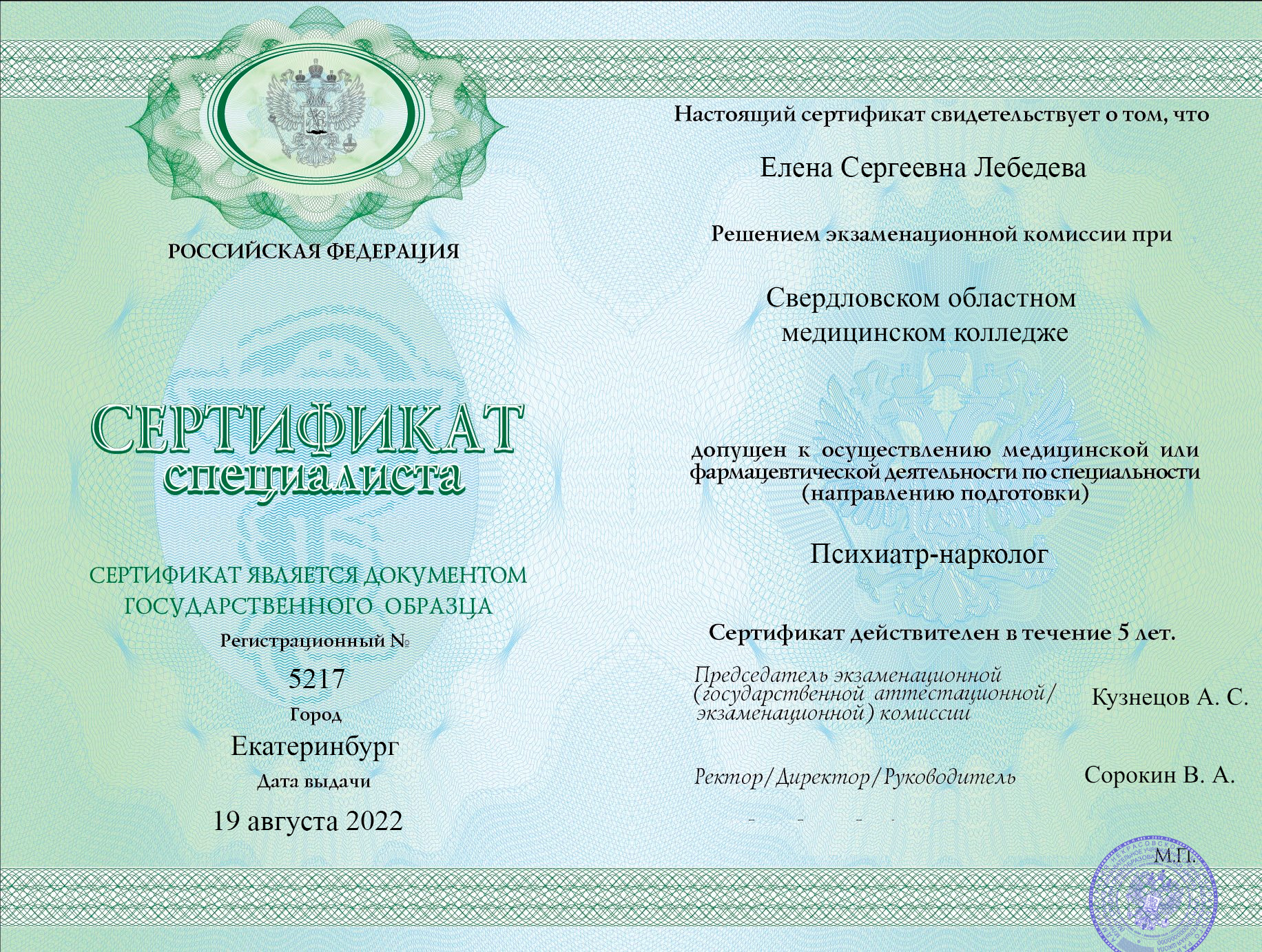 Елена Сергеевна Лебедева врач нарколог клиники доктора Стукаловой в Суходольске